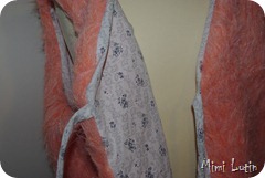 Donc un gilet de berger en fausse fourrure 800% synthétique de mon stock, et doublure dans un joli coton de chez destock-tissu, je l’adore ce coton, je vais me faire quelques chose pour moi aussi dedans.